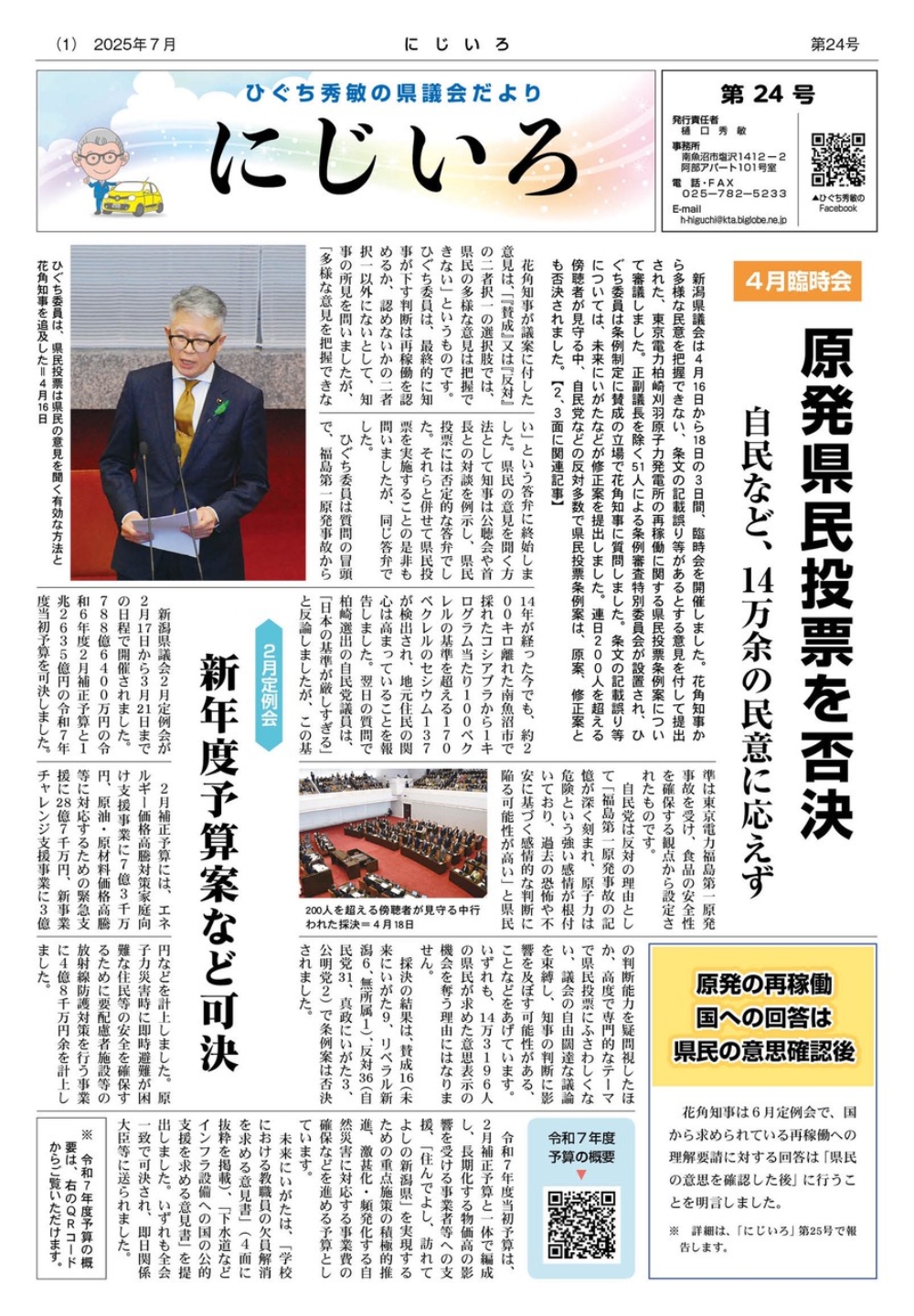 Top Page  事務所地図 新潟県議会(会議録) 県議会だより 県議会予定表  プロフィール 後援会FaceBook  ひぐち秀敏FaceBook