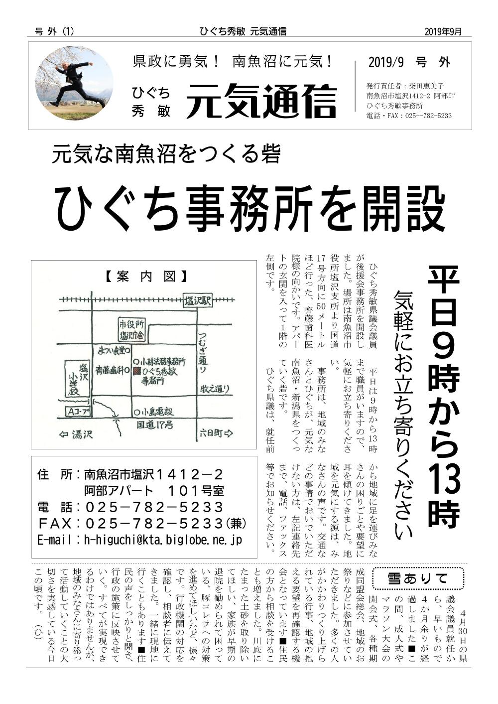 後援会事務所 〒949-6408 新潟県南魚沼市塩沢1412-2 阿部アパート 101号            https://higuchi-hidetoshi.com