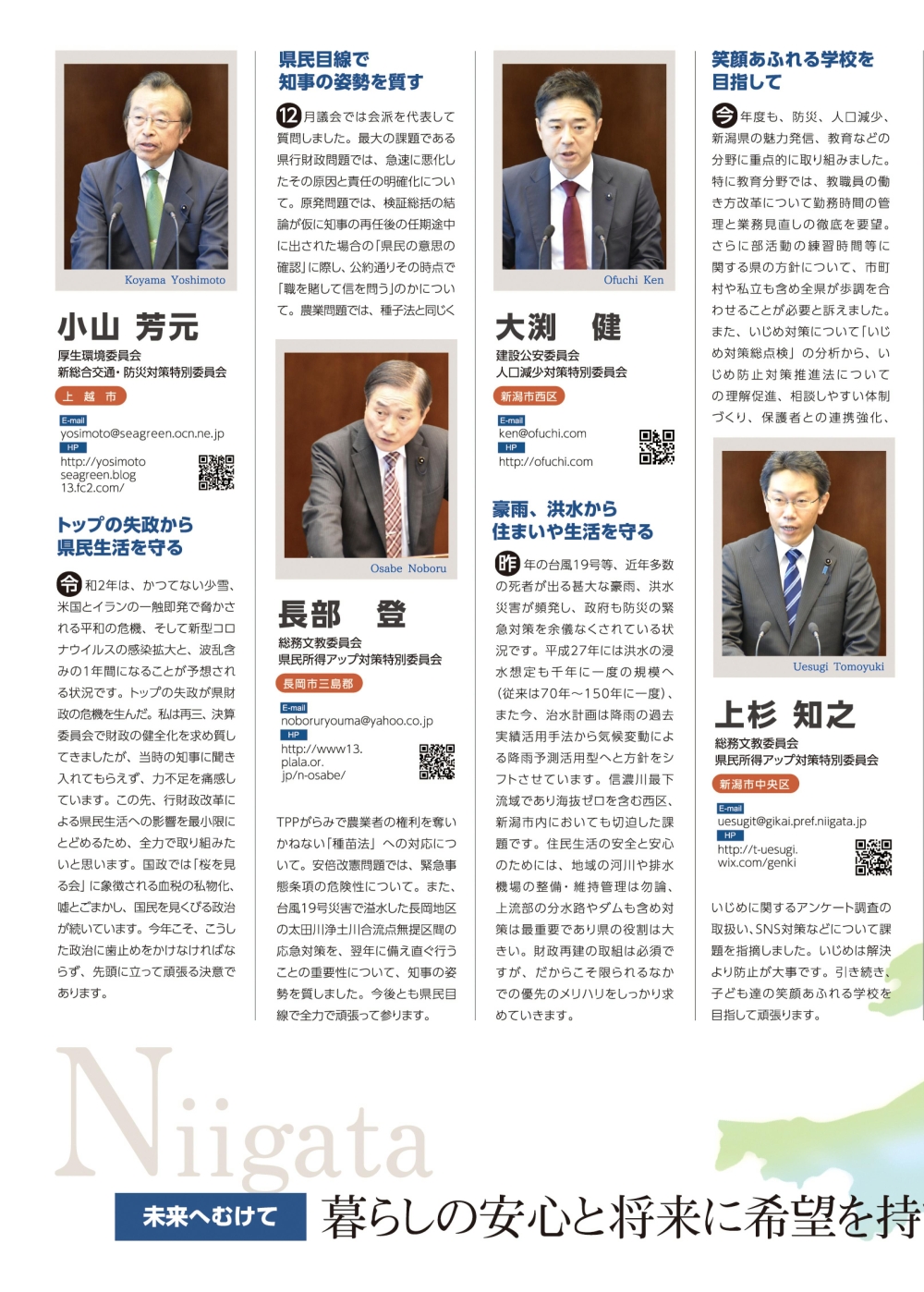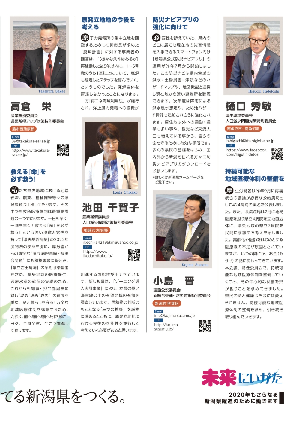 Top Page  事務所地図 新潟県議会(会議録) 県議会だより 県議会予定表  プロフィール 後援会FaceBook  ひぐち秀敏FaceBook