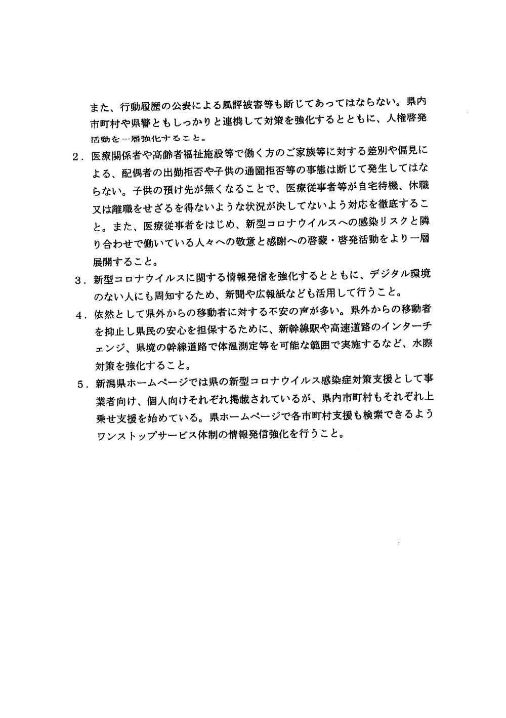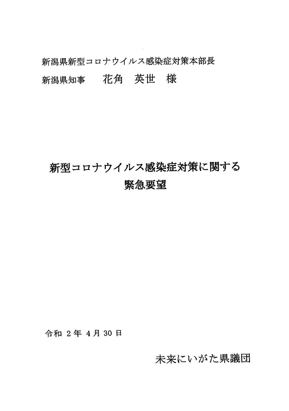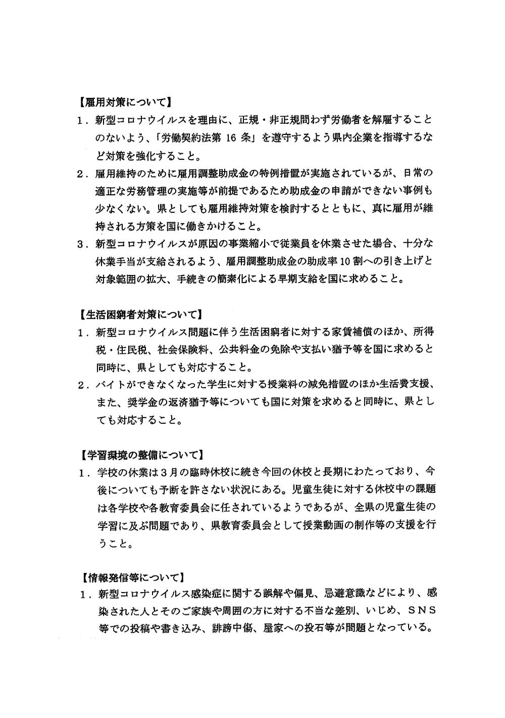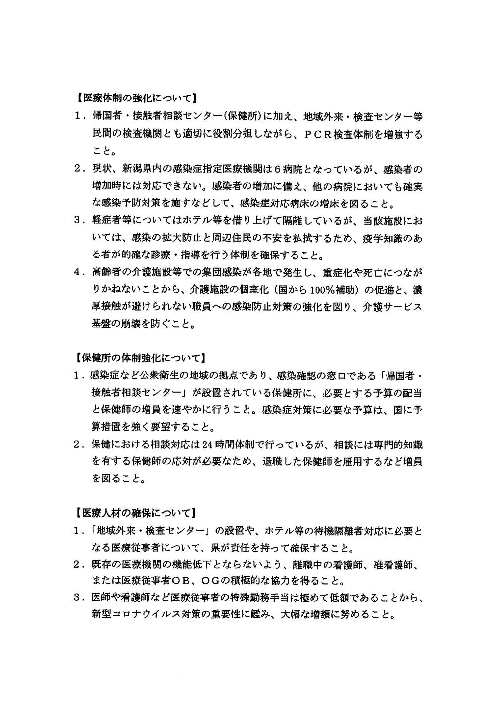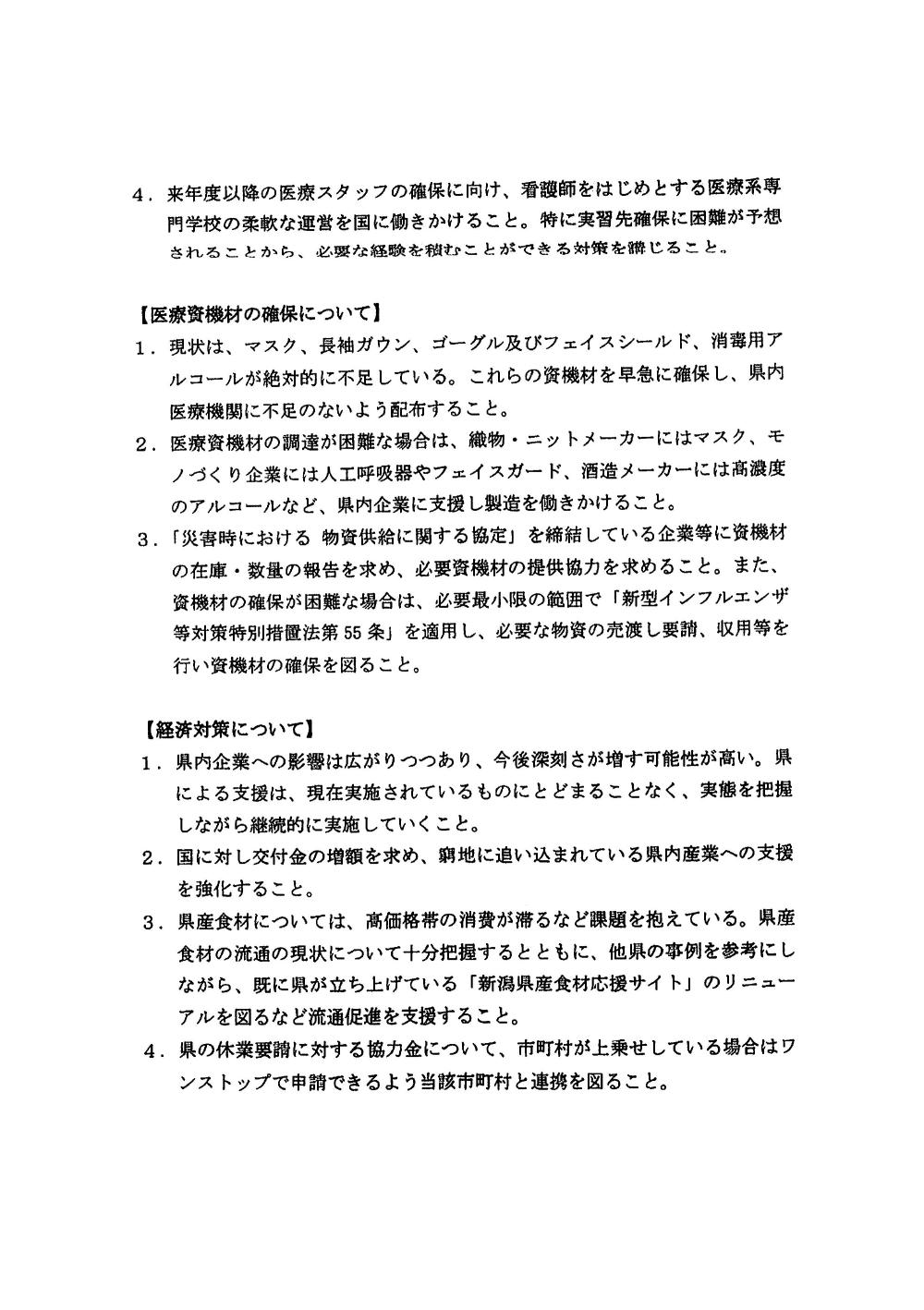 新型コロナウイルス感染症対策に関する緊急要望