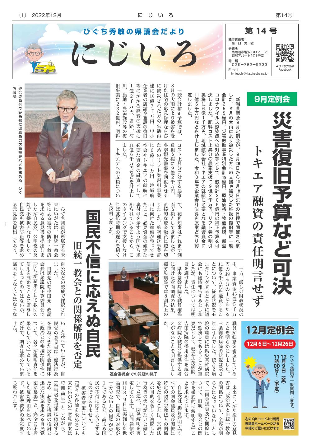 Top Page  事務所地図 新潟県議会(会議録) 県議会だより 県議会予定表  プロフィール 後援会FaceBook  ひぐち秀敏FaceBook