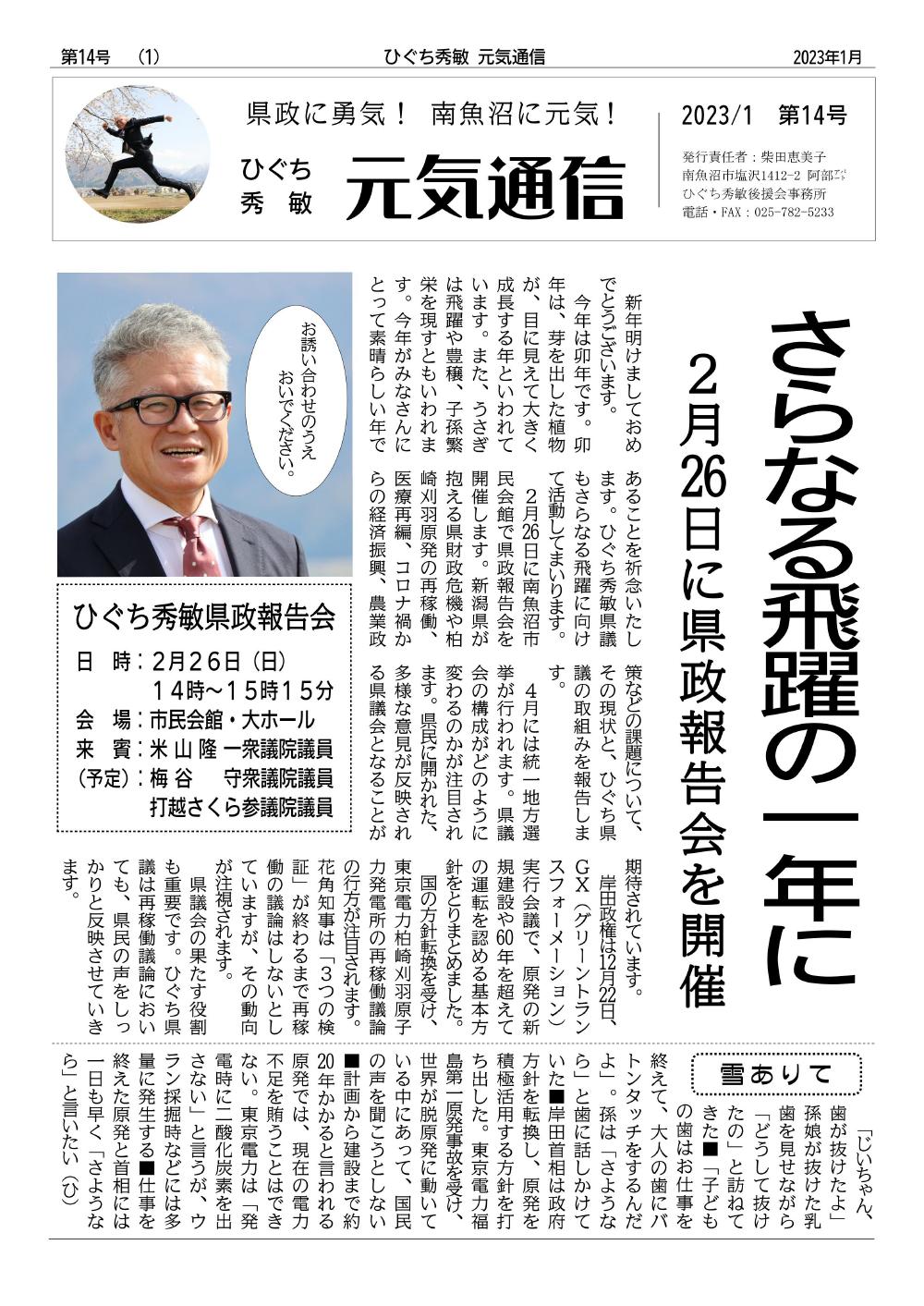 Top Page  事務所地図 新潟県議会(会議録) 県議会だより 県議会予定表  プロフィール 後援会FaceBook  ひぐち秀敏FaceBook