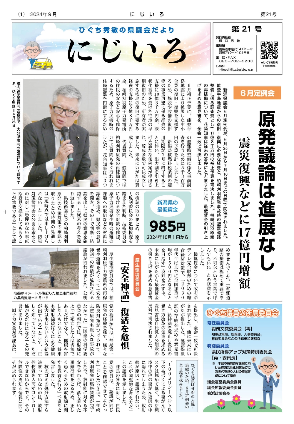 Top Page  事務所地図 新潟県議会(会議録) 県議会だより 県議会予定表  プロフィール 後援会FaceBook  ひぐち秀敏FaceBook